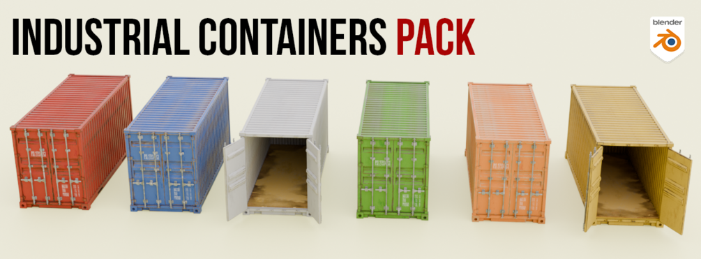 This free (pay-what-you-want) pack includes 6 industrial shipping containers, ready to use in your Blender projects — ideal for port, industrial, or post-apocalyptic scenes.